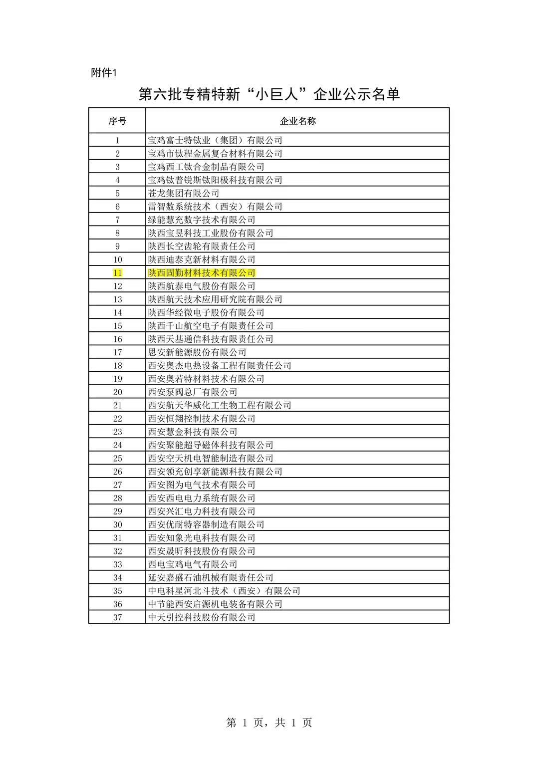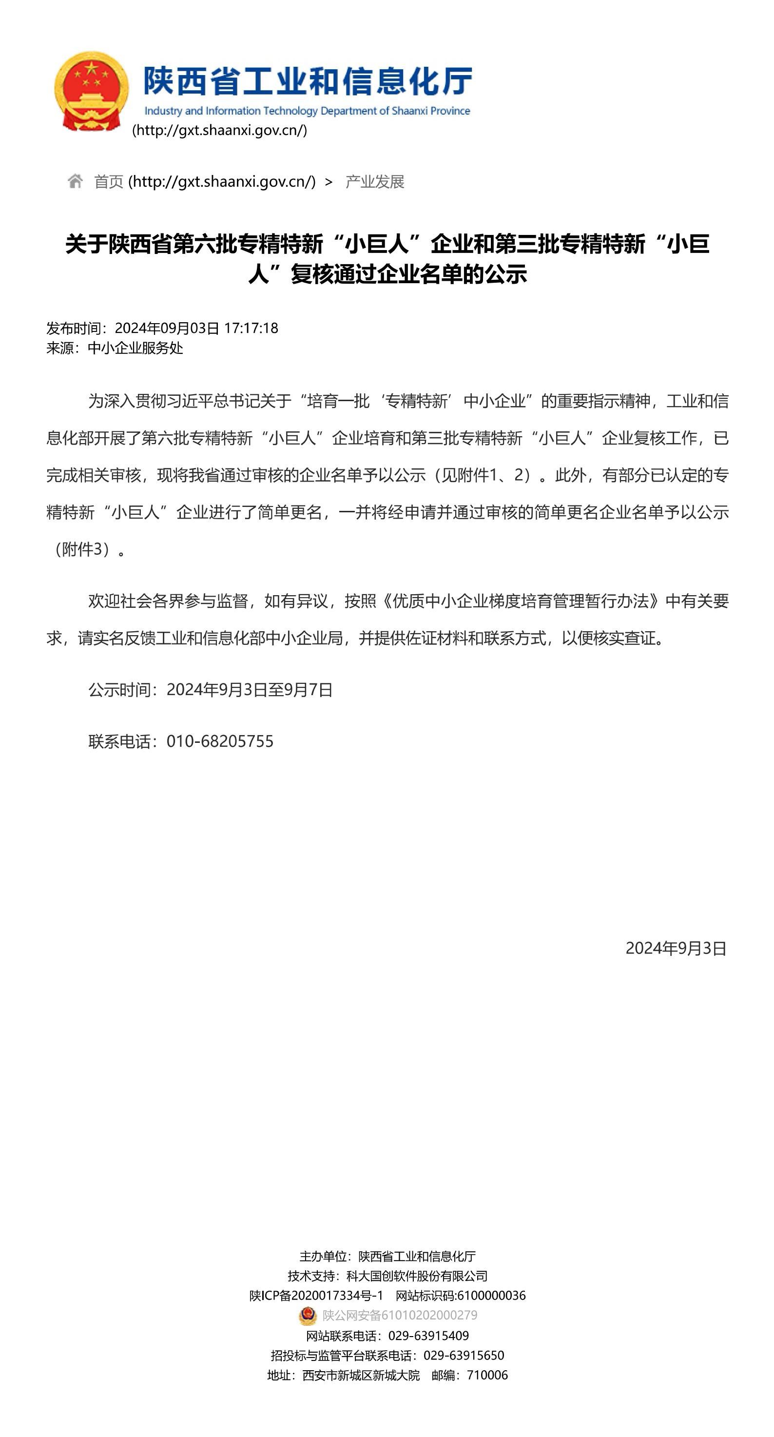 近日,陜西工業(yè)和信息化廳公布了2024年專(zhuān)精特新“小巨人”企業(yè)公示名單,經(jīng)嚴(yán)格篩選和綜合評(píng)比,陜西固勤材料技術(shù)有限公司成功入選,并榮獲了*級(jí)專(zhuān)精特新“小巨人”企業(yè)榮譽(yù)稱(chēng)號(hào)。
